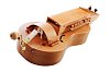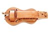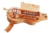 Компактный корпус в форме "виола" выполнен из ольхового массива. Купольная нижняя дека из клёна. Игровое колесо изготовлено из переклеенной фанеры с рабочей кромкой из массива груши. Внутренняя механика выполнена из латуни. Клавиатура изготовлена из массива клёна и груши. Колковая коробка выносная. Колковая механика металлическая типа "банджо". Инструмент покрыт полуматовым лаком. Звукоряд хроматический размером в одну октаву. Оригинальная ручка выполнена из латуни и клёна. Звучание яркое, насыщенное.