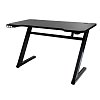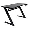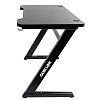 Покрытие столешницы выполнено в черном стиле с карбоновым покрытием, что не только придает современный и высокотехнологичный вид, но и защищает стол от царапин и потертостей. На задней части стола есть два закрывающихся отверстия для кабелей, позволяющих спрятать коммутацию и придать рабочему месту более аккуратный вид. Помимо этого в стол встроен эргономичный держатель для наушников.