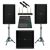 от 33 065 ₽/мес Звукоусилительный комплект MACKIE на базе 15" активной акустики MACKIE THUMP215 и активного сабвуфера THUMP118S. В комплект добавлены беспроводные вокальные микрофоны ROCKDALE PRO Stage 220 BK Vocal.